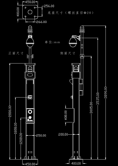 可安裝監(jiān)控球機(jī)、防水?dāng)z像機(jī)、警燈等設(shè)備,位置高、角度寬、監(jiān)控距離遠(yuǎn)內(nèi)走線設(shè)計(jì),防爆防老化。