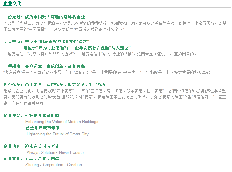 延華智能,國內(nèi)著名的智慧城市服務(wù)與運營商,專注于智慧城市頂層設(shè)計、智慧醫(yī)療、智慧節(jié)能、智慧環(huán)保、智慧交通、智慧養(yǎng)老、智慧社區(qū)與智能建筑等專業(yè)領(lǐng)域,是國內(nèi)第一家以智能建筑為主業(yè)在深交所上市的公司,第一家以智慧城市項目完成增發(fā)的上市企業(yè),是智慧城市領(lǐng)域業(yè)內(nèi)資質(zhì)最齊全、專業(yè)最齊備的集團(tuán)公司。